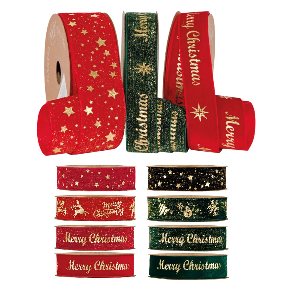 Nastro Tessuto Tema Natlizio Verde Rosso