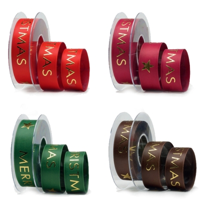 Nastro Doppio Raso Con Stampa Merry Christmas