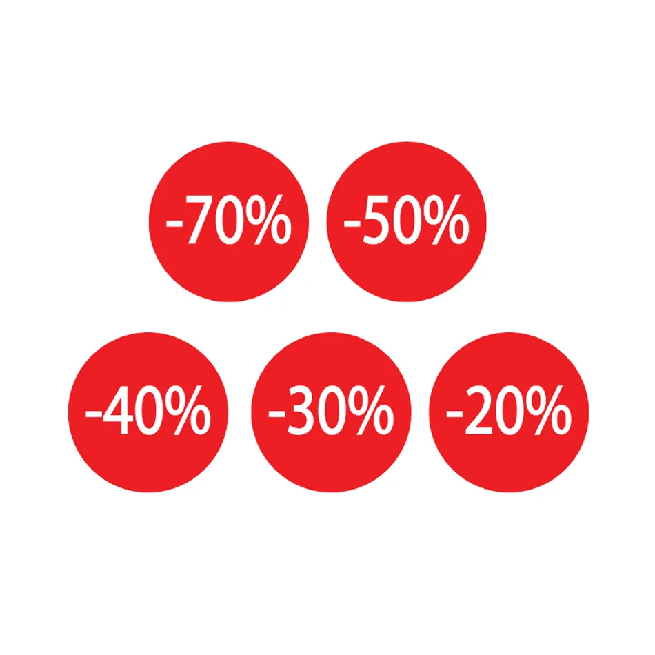 Vetrofanie Tonde Percentuali, senza colla e riutilizzabili. 1 pezzo per percentuale