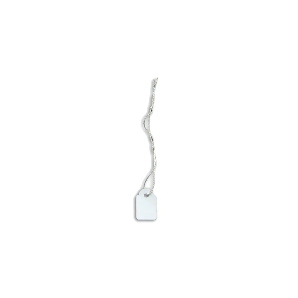 Descrizione Cartellini con Filo, in carta bianca, utile come segnaprezzo ed eventuale descrizione del prodotto.