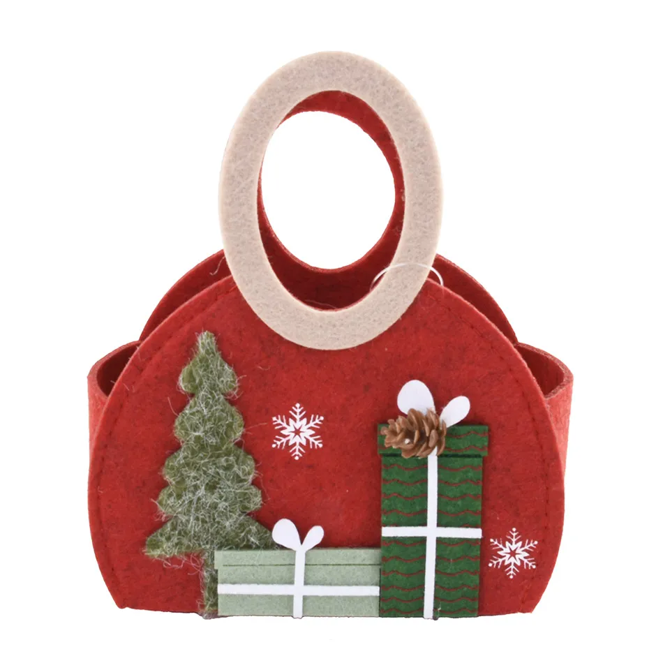 Cestino Borsa Panno Rossa Con Decori Natalizi