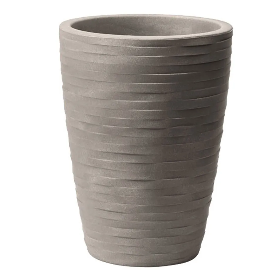 Vaso conici con una moderna superficie ad effetto tridimensionale, prodotti in resina con superficie matt, leggermente ruvida al tatto, di qualità superiore.Colore Cenere. Sono vasi prodotti con tecnologia rotazionale, il cui processo produttivo dura piu' di 1 ora ciascuno, e sono poi rifiniti a mano.Sono una soluzione ideale per interni, ma anche per terrazzi e giardini, grazie alla resistenza ai raggi UV e a temperature da -60° a +80°C. I materiali impiegati e la tecnica produttiva garantiscono resistenza, solidità e cura del dettaglio.
