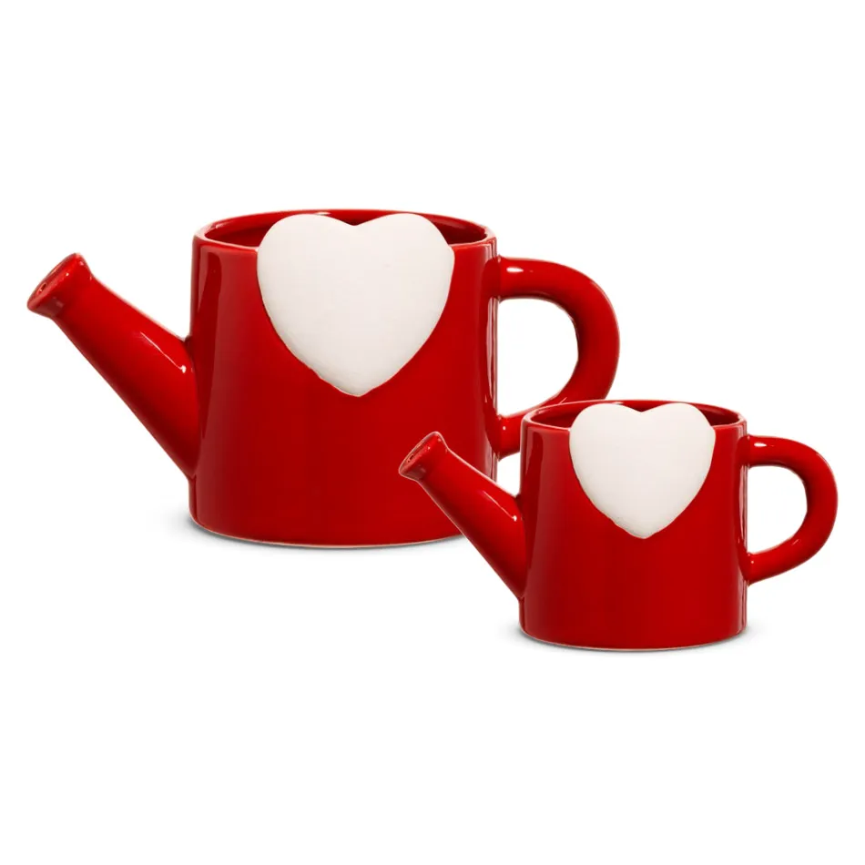 Vaso Annaffiatoio Ceramica Rosso e cuore bianco