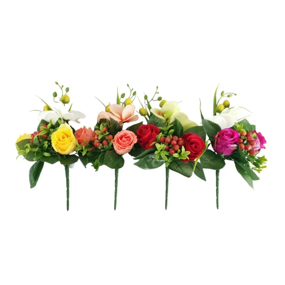 Descrizione Bush Rose e Mini Orchidea, disponibile in giallo, pesca, rosso e fucsia