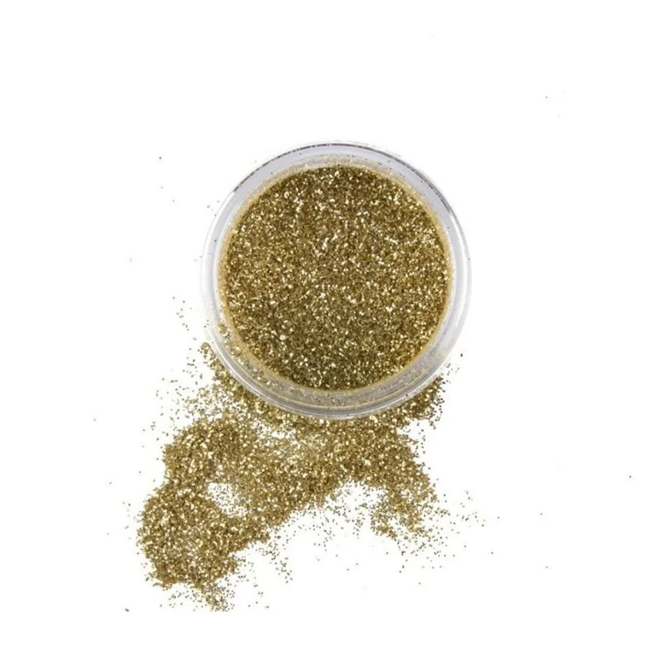 Descrizione Glitter oro in vasetto trasparente con coperchio.