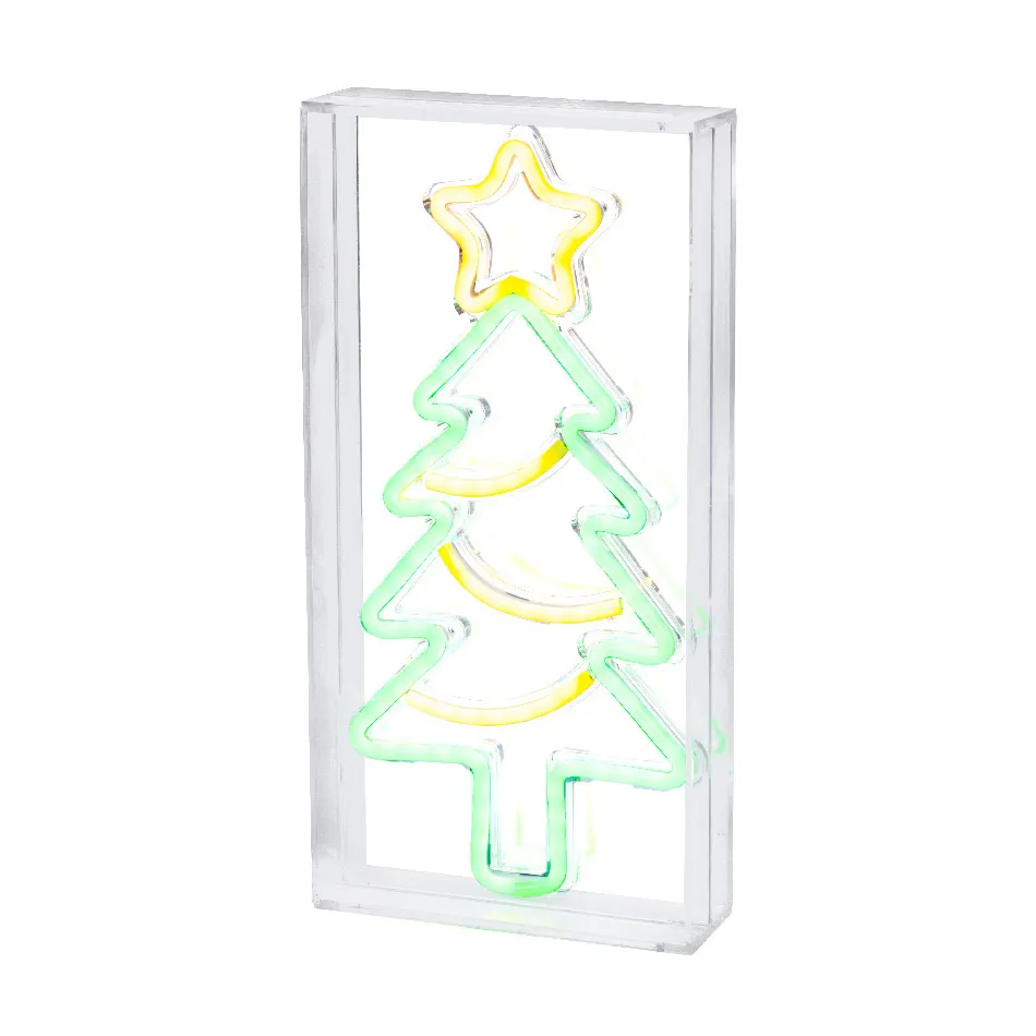 Descrizione Display Albero di Natale con Luci Led, Struttura plexy trasparente e luci giallo e verde