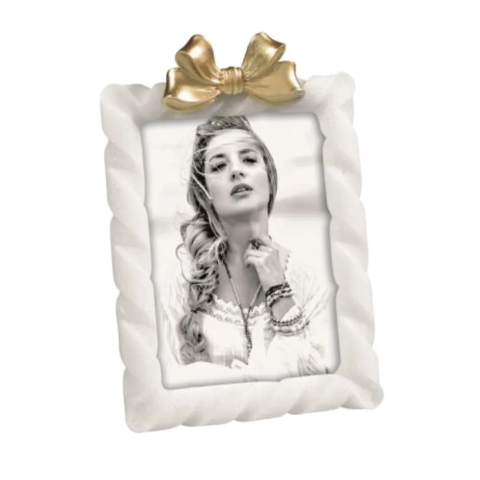 Cornice Porta Foto Legno Con Fiocco Dorato