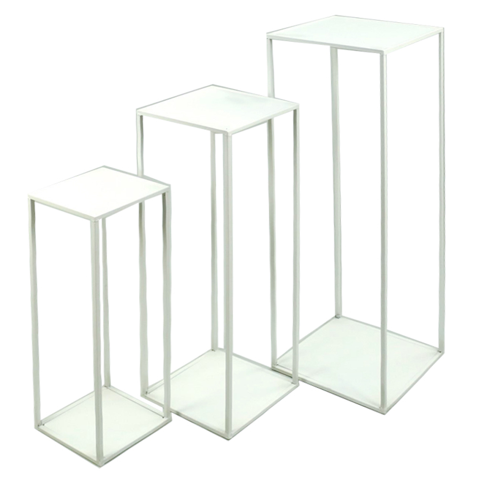 Set 3 display alzate quadrate in metallo bianco verniciato, utili, pratici ed eleganti, possono essere usati per ogni tipo di evento o cerimonia, per arredare e valorizzare ogni prodotto.