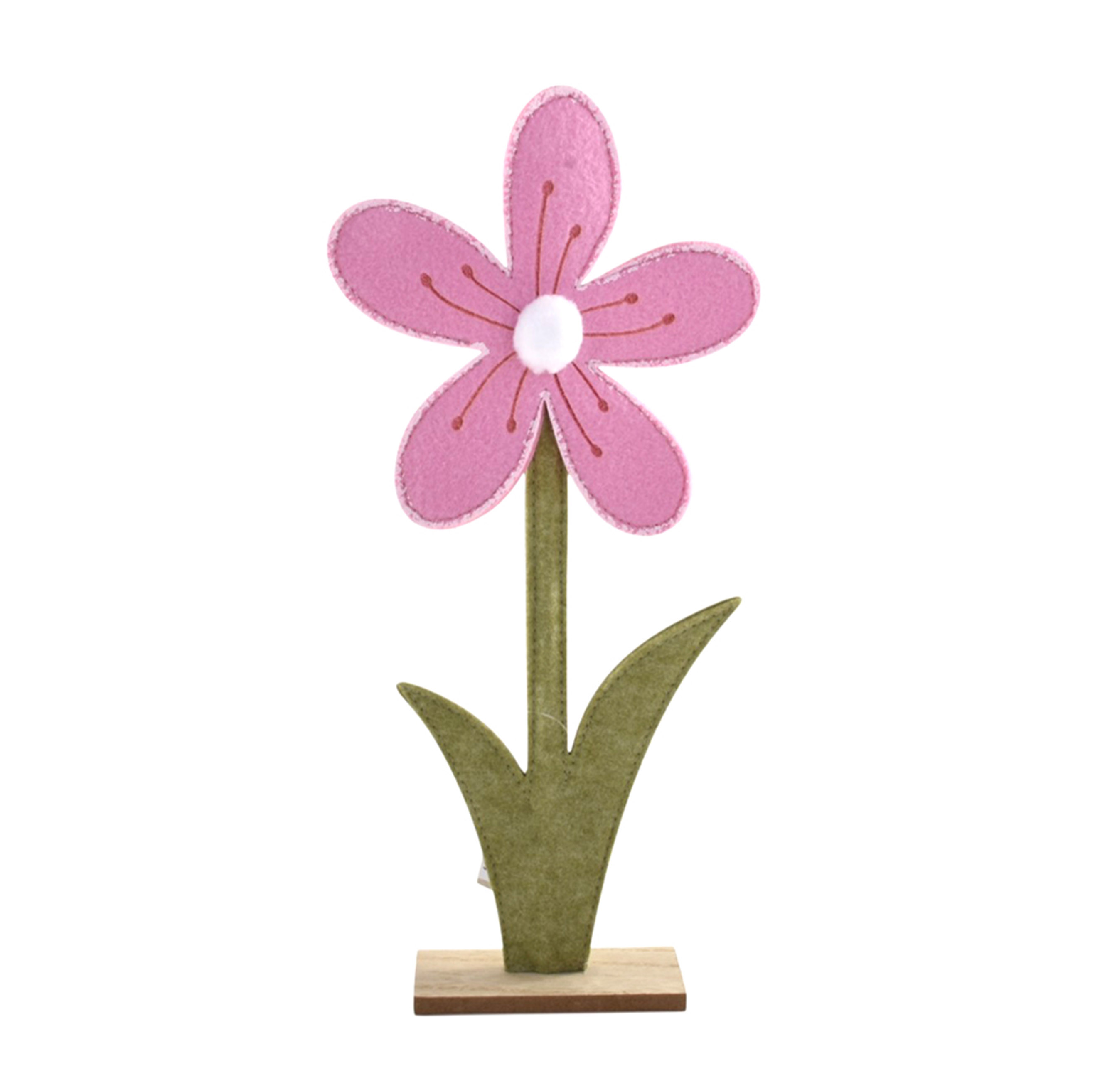 Descrizione Fiore Margherita Rosa di Feltro, con base in legno
