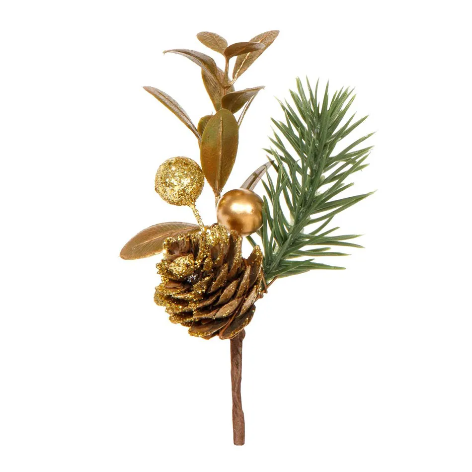 Descrizione Pick ramo pino con pigna e bacche dorate