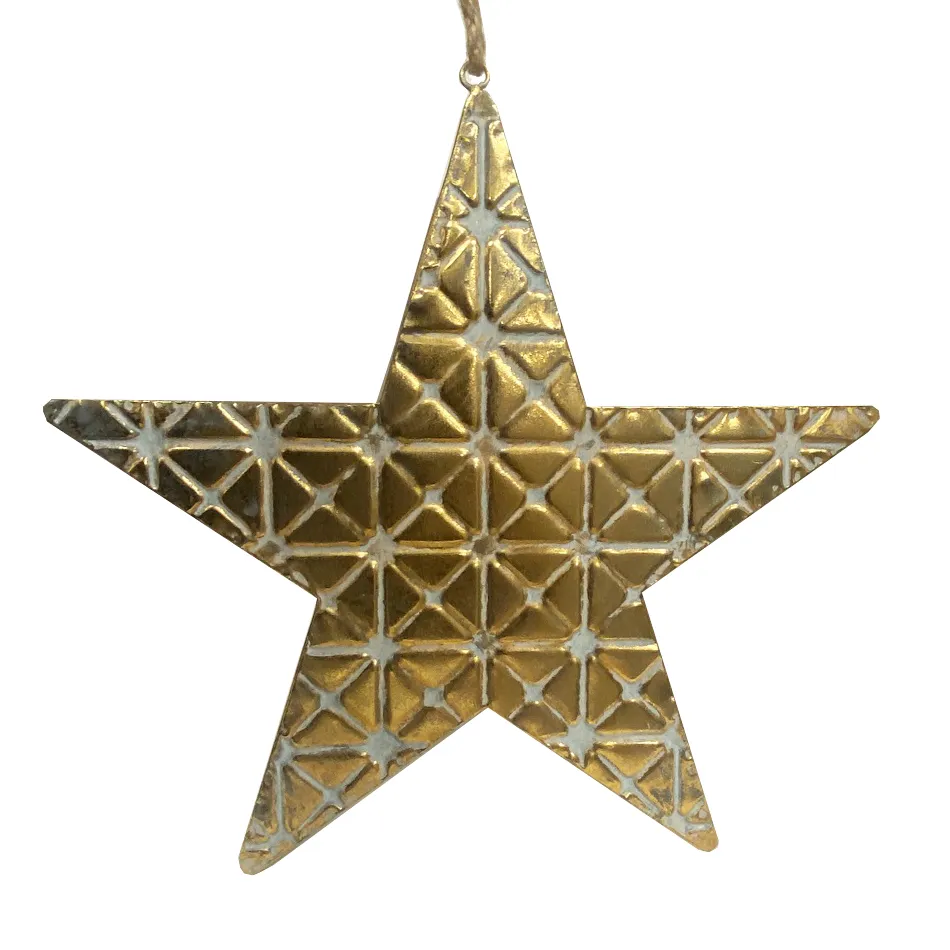 Descrizione Stella in Metallo Dorato, lavorato e colorato, da appendere