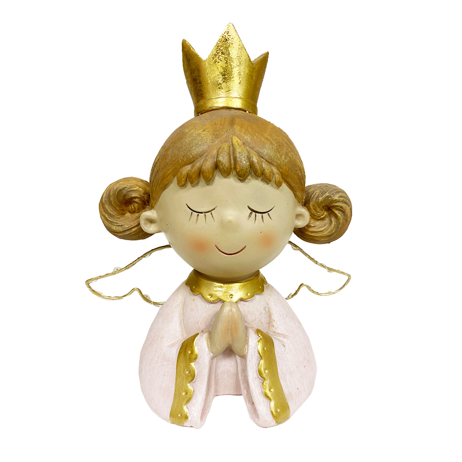 Busto di Fata in resina lavorata e colorata, abito rosa e dettagli dorati, con Ali Luminose (a batteria)