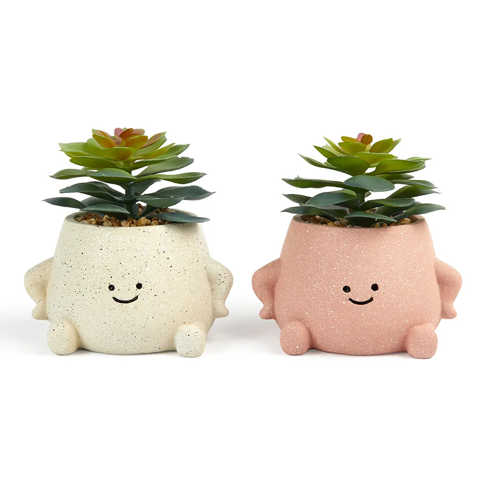 Vaso Smile con pianta grassa artificiale