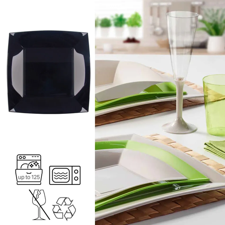 Piatti in Plastica Nero Riutilizzabile