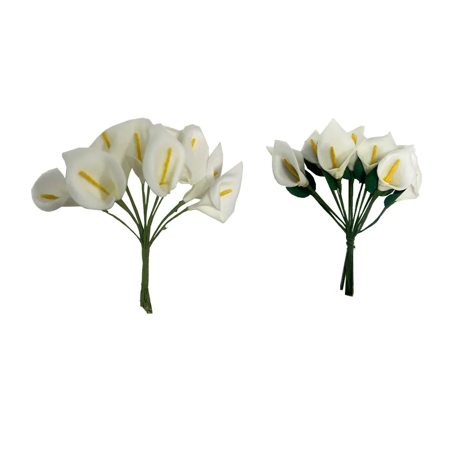 Descrizione Pick di Calle Bianche Artificiali, decorative sintetica, con gambo animato, specifico per il confezionamento di bomboniere.