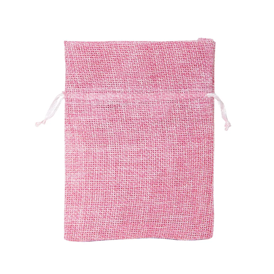 Sacchettini in Tela yuta rosa, in tinta unita con laccio per la chiusura in tono, per il confezionamento di bomboniere, articoli di piccole dimensioni.