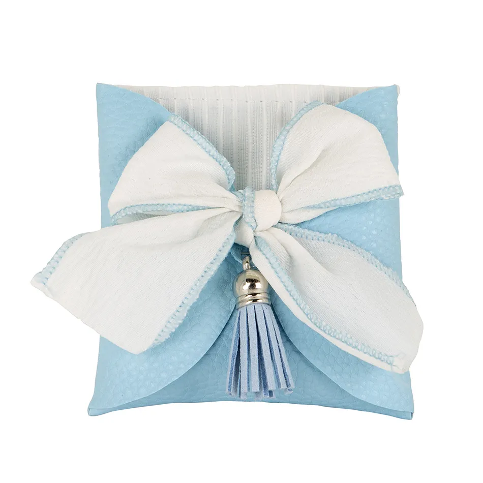 Sacchettino Con Ficco e Nappina Similpelle Celeste