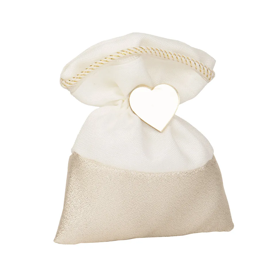 Sacchettino Cotone Avorio e Poliestere Oro Con Cuore Oro