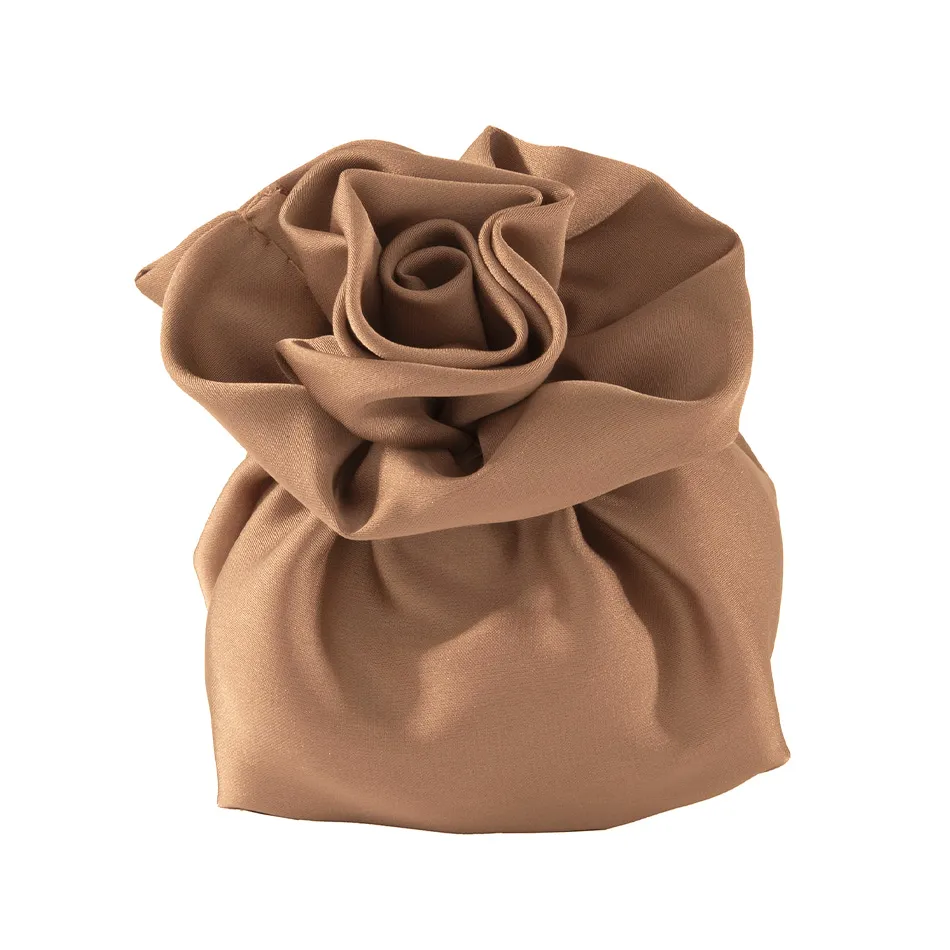 Sacchettino Quadrato Marrone Chiaro in Poliestere Con Chiusura A Rosaù