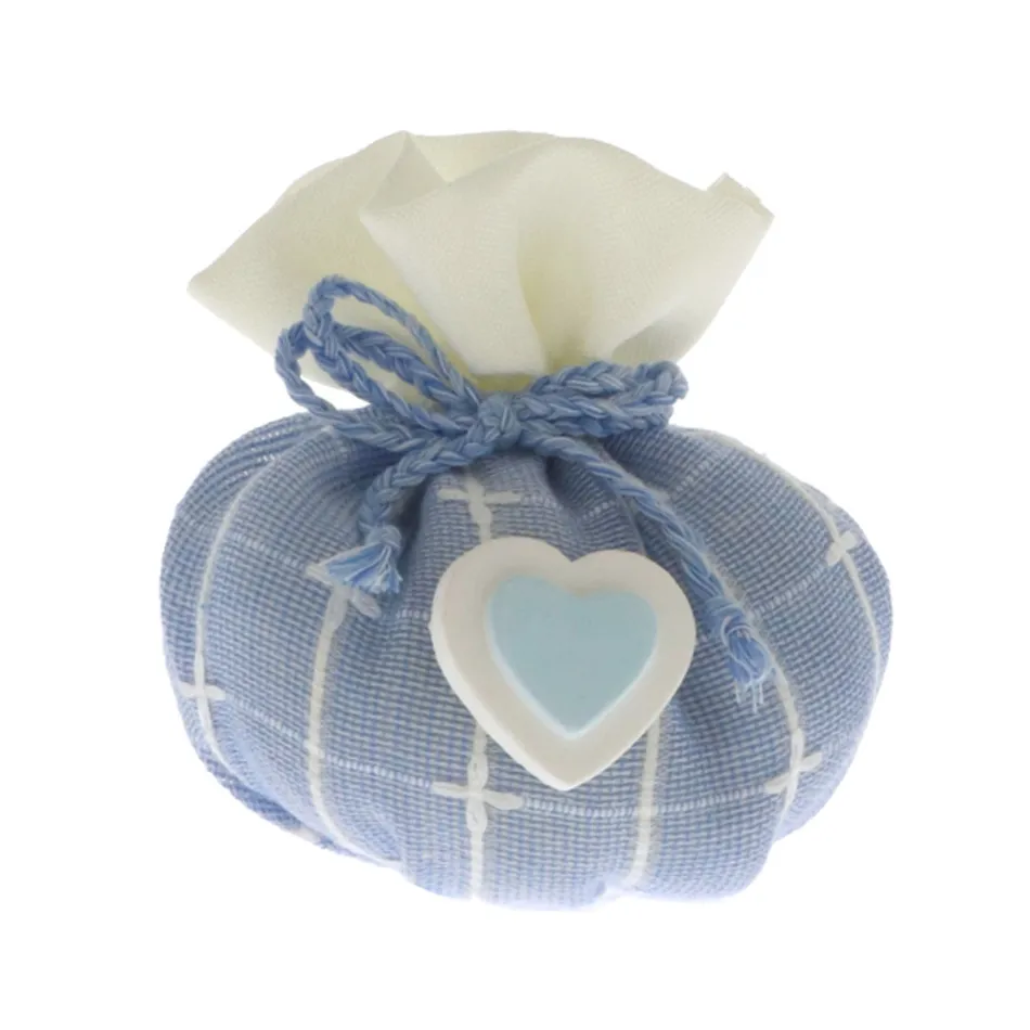 Sacchetto Base Tonda Celeste e Bianco Con Cuore Di Gesso Applicato