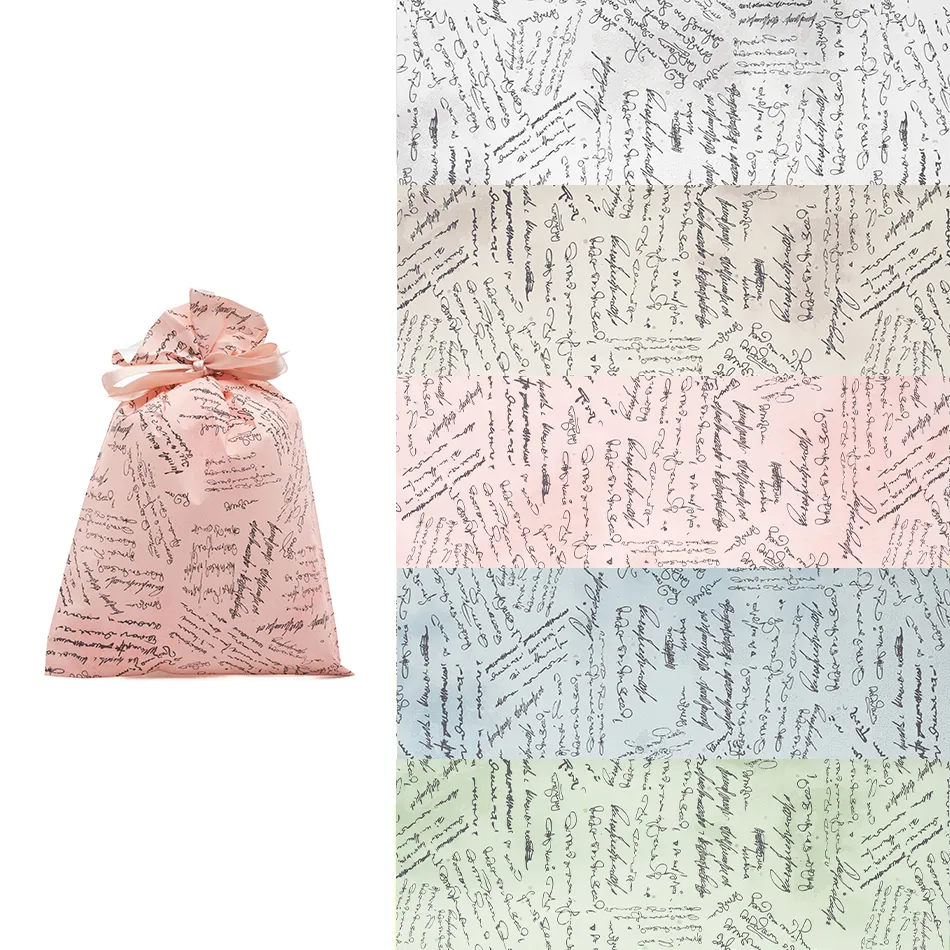 Buste Regalo in PPL polipropilene con stampa varie scritture, confezione assortita in 5 colori (bianco, crema, rosa, celeste, verde). Ideali per il confezionamento di articoli regalo , abbigliamento e oggettistica.