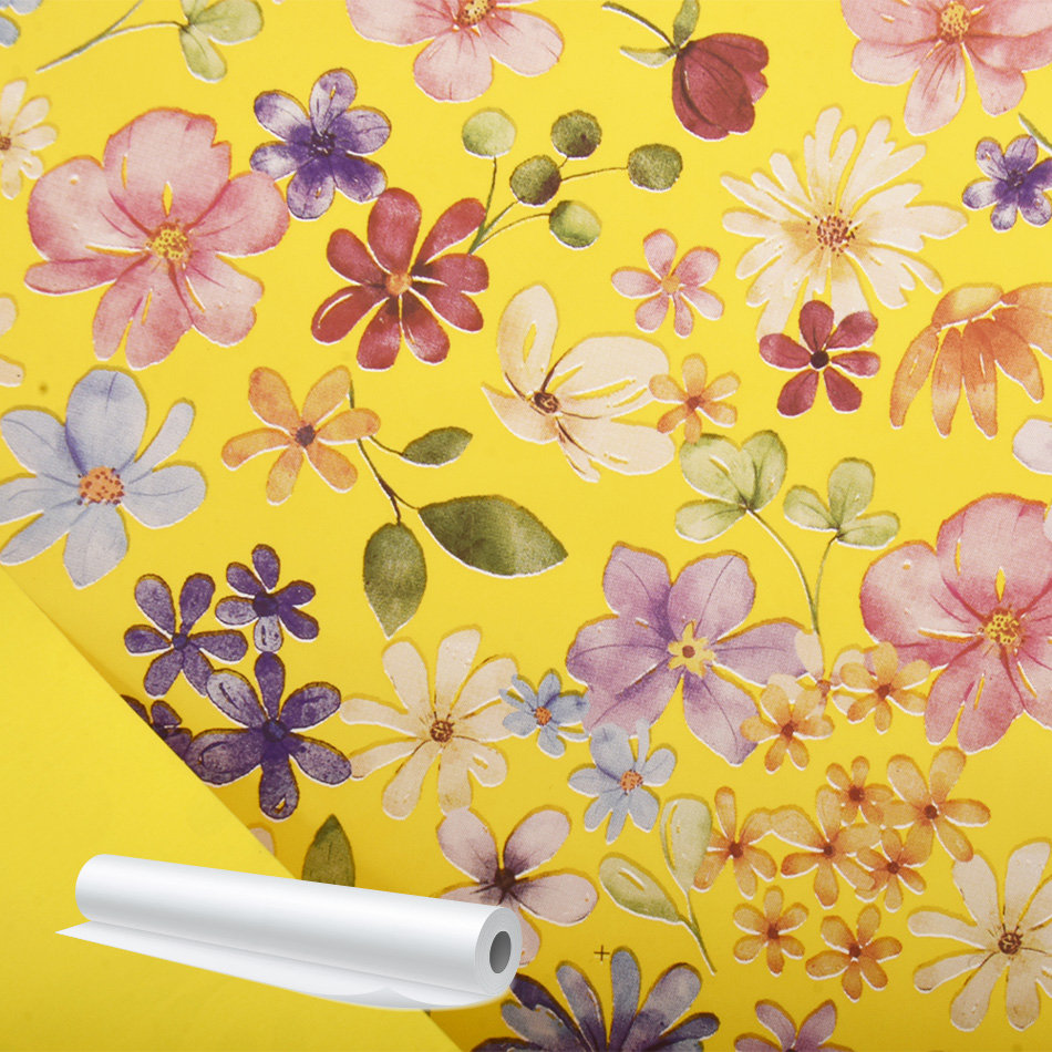 Bobina Carta in Polipropilene Giallo con Fiori Mix