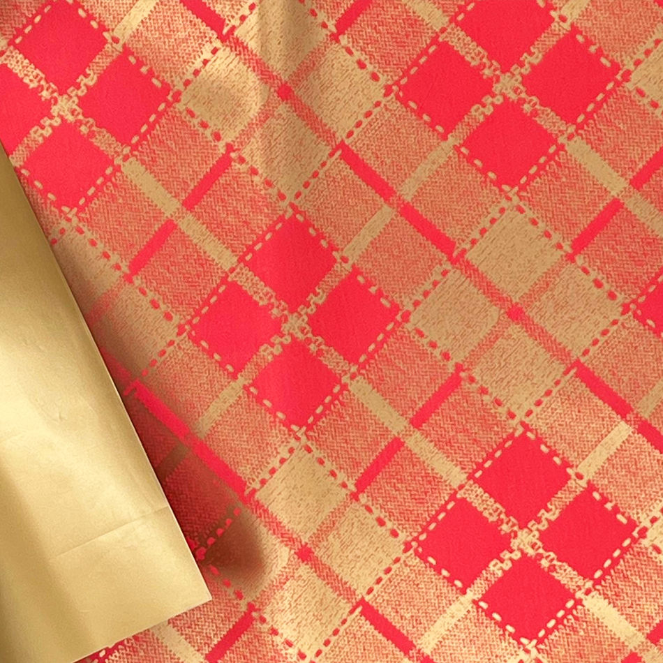 Bobina Carta Regalo in Polipropilene Oro Tartan Rosso