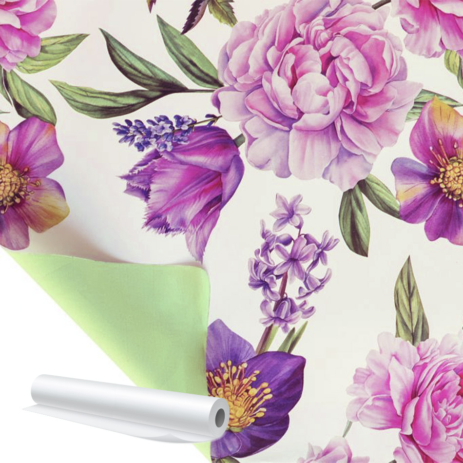 Bobina Carta Regalo in Polipropilene Peonia Rosa Fucsia su base Bianca