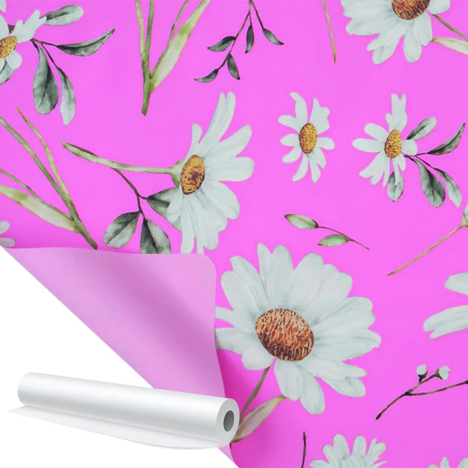 Bobina Carta Regalo in Polipropilene Rosa con Margherite Bianche