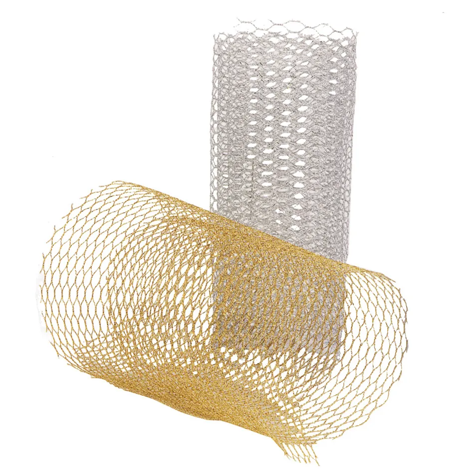 Descrizione Nastro di rete esagonale in lurex, disponibile in oro e argento.