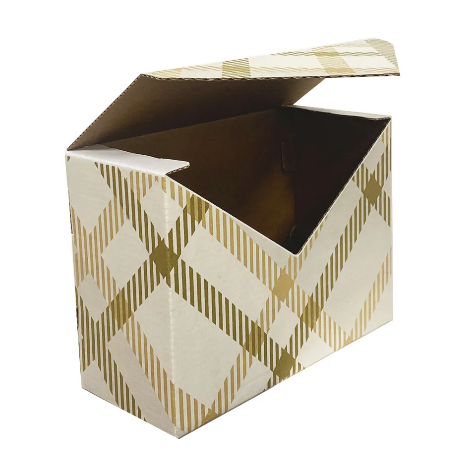 Descrizione Scatola Busta, Box Regalo, Cartone Tartan Avorio e Oro