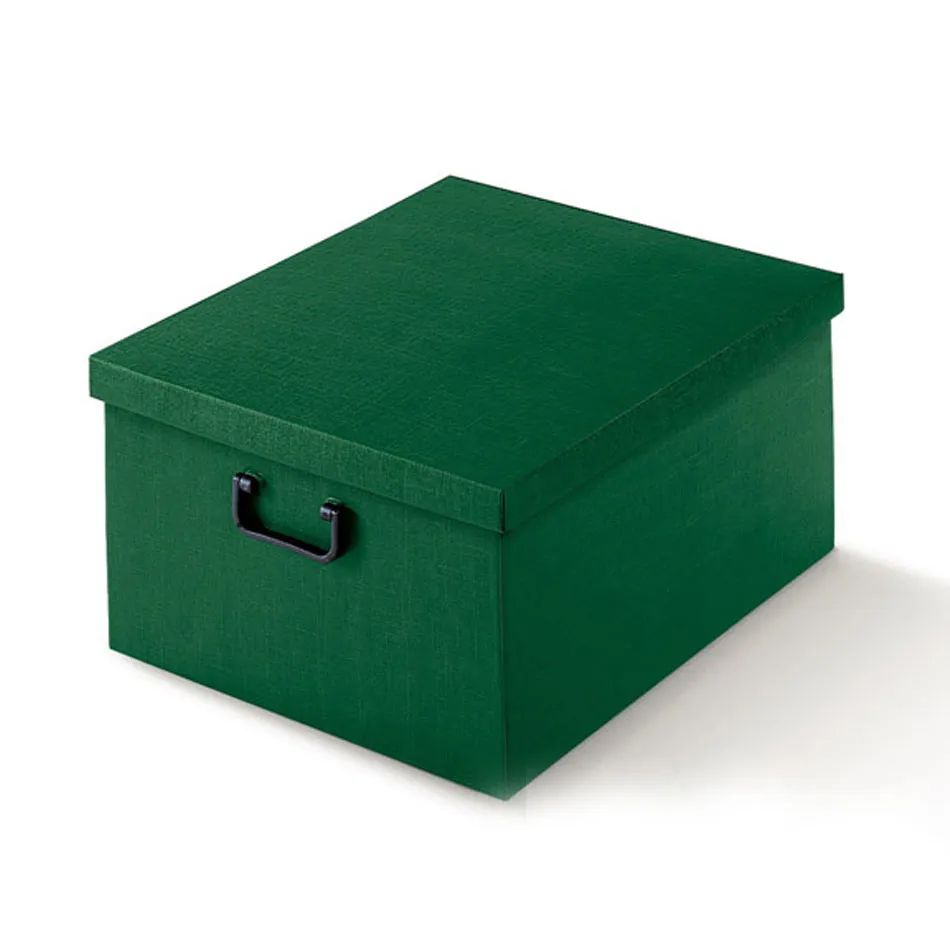 Descrizione Scatola in cartone accoppiato con coperchio per contenere abbigliamento, prodotti enogastronomici vari, archivio. Disponibile in formati per armadio, nelle versioni con maniglie in plastica da montare.