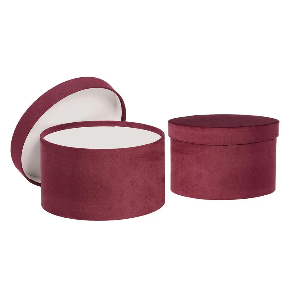 Scatole Cappelliere in Cartone rivestite in Velluto Bordeaux
