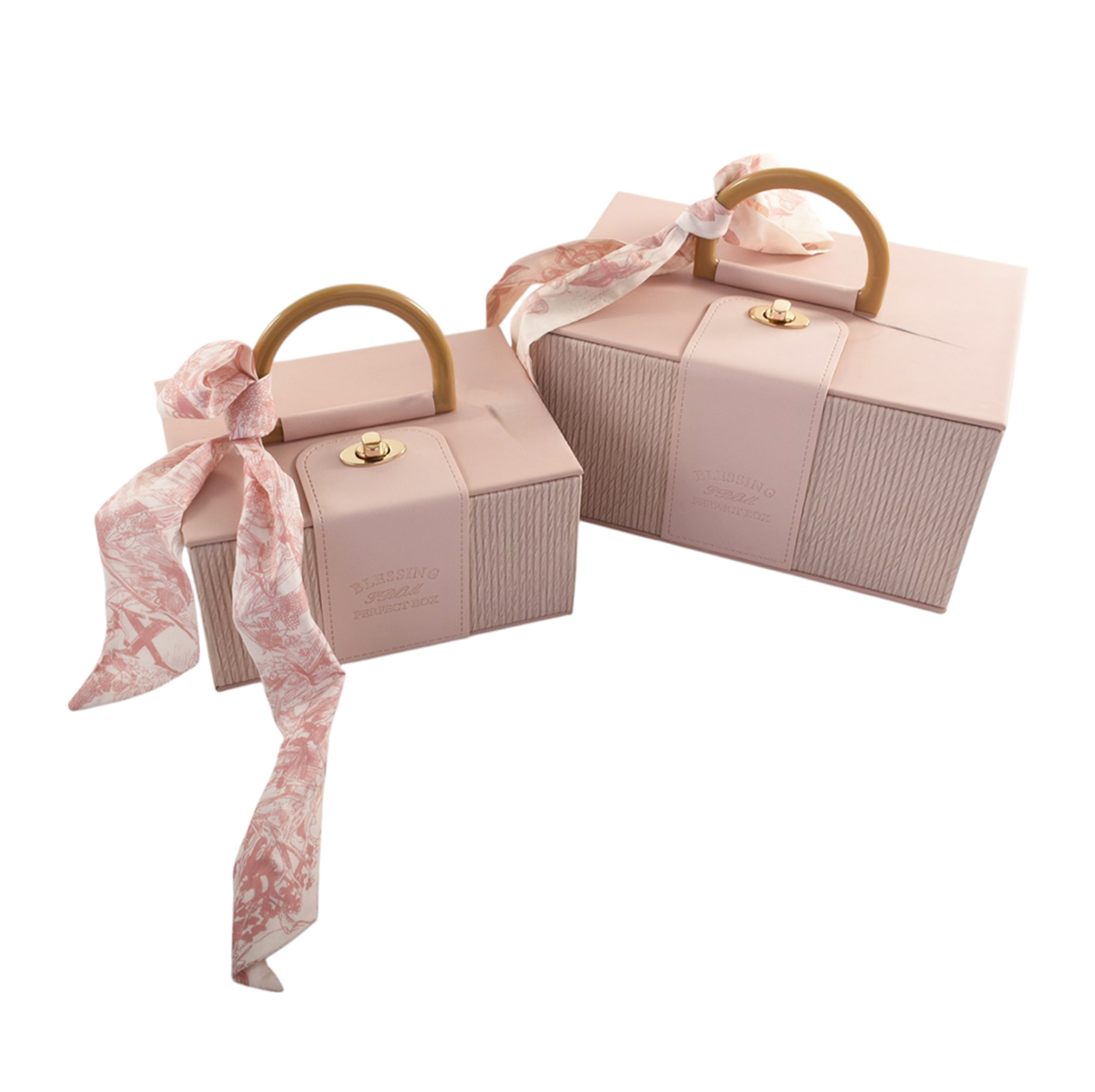 Set 2 Cofanetti Regalo Rosa Con Manico e Foulard