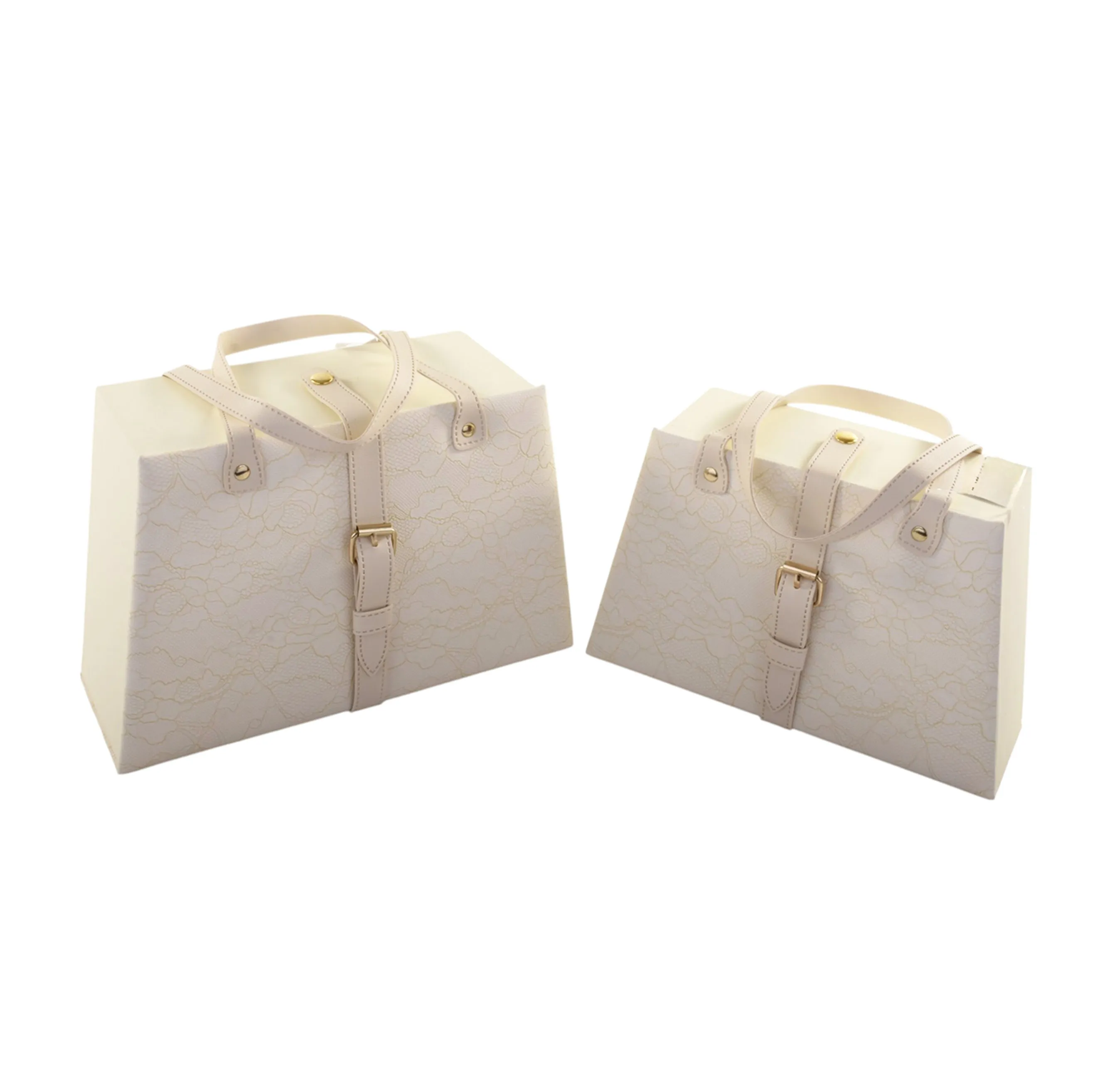 Set 2 Scatole Gift Box Crema Con Manici