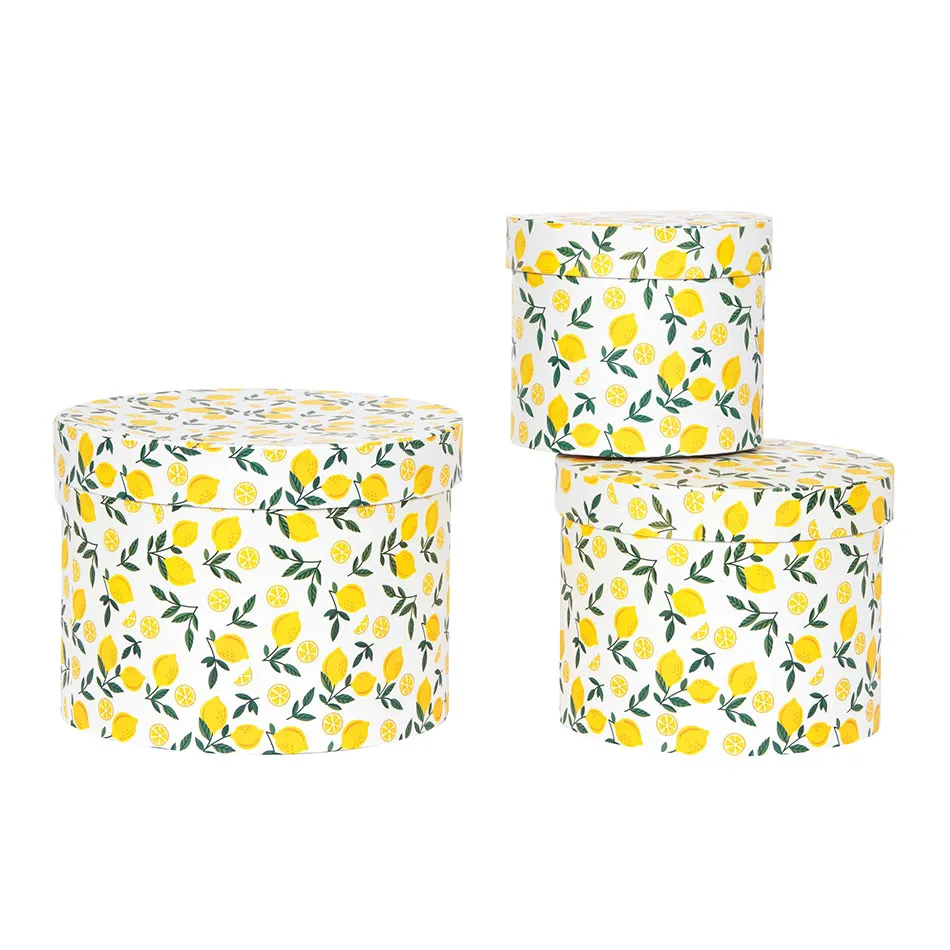Descrizione Set 3 Capelliere Limoni, scatole in cartone con rivestimento interno in plastica.