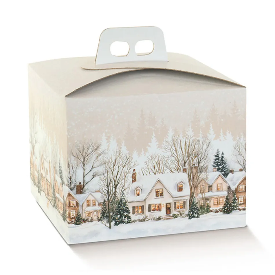 Scatola Quadrella Porta Panettone Vllaggio Natale Con Maniglia