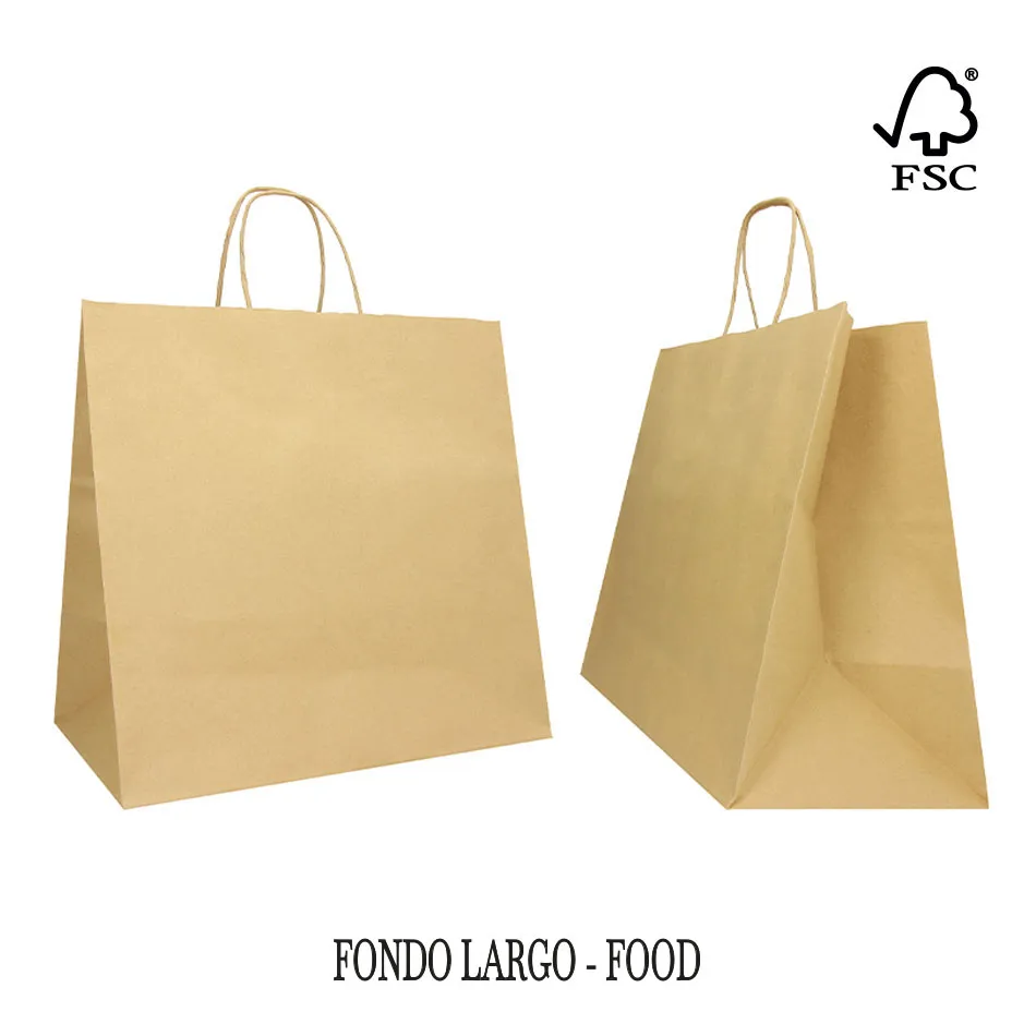 Descrizione Shopper Borsa Carta Food manico cordino ritorto.