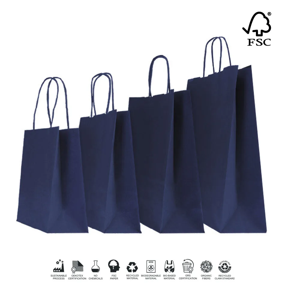 Borse Shopper Carta kraft Colorata prodotta con carta riciclabile,composta di materie di alta qualità e resistenza.