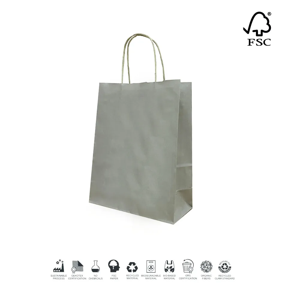 Descrizione Shopper borsa carta kraft grigio.