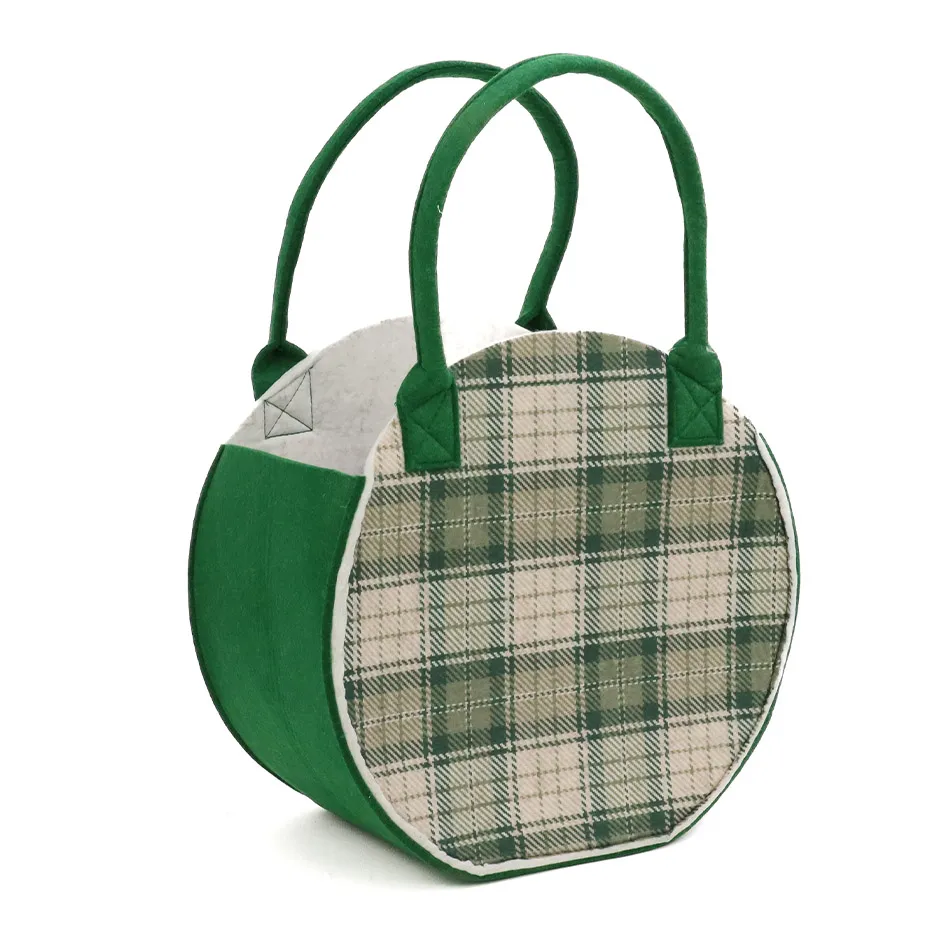 Cesto Borsa in Tessuto Con Manici Scozzese Verde