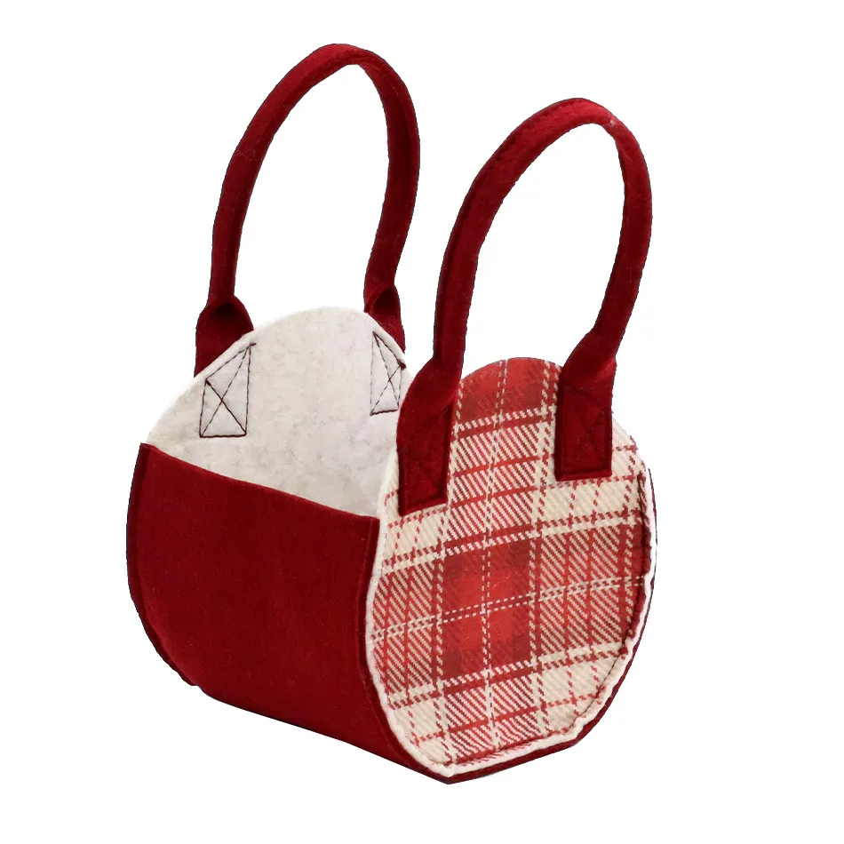 Cesto Borsa Con Manici Feltro Rosso Scozzese