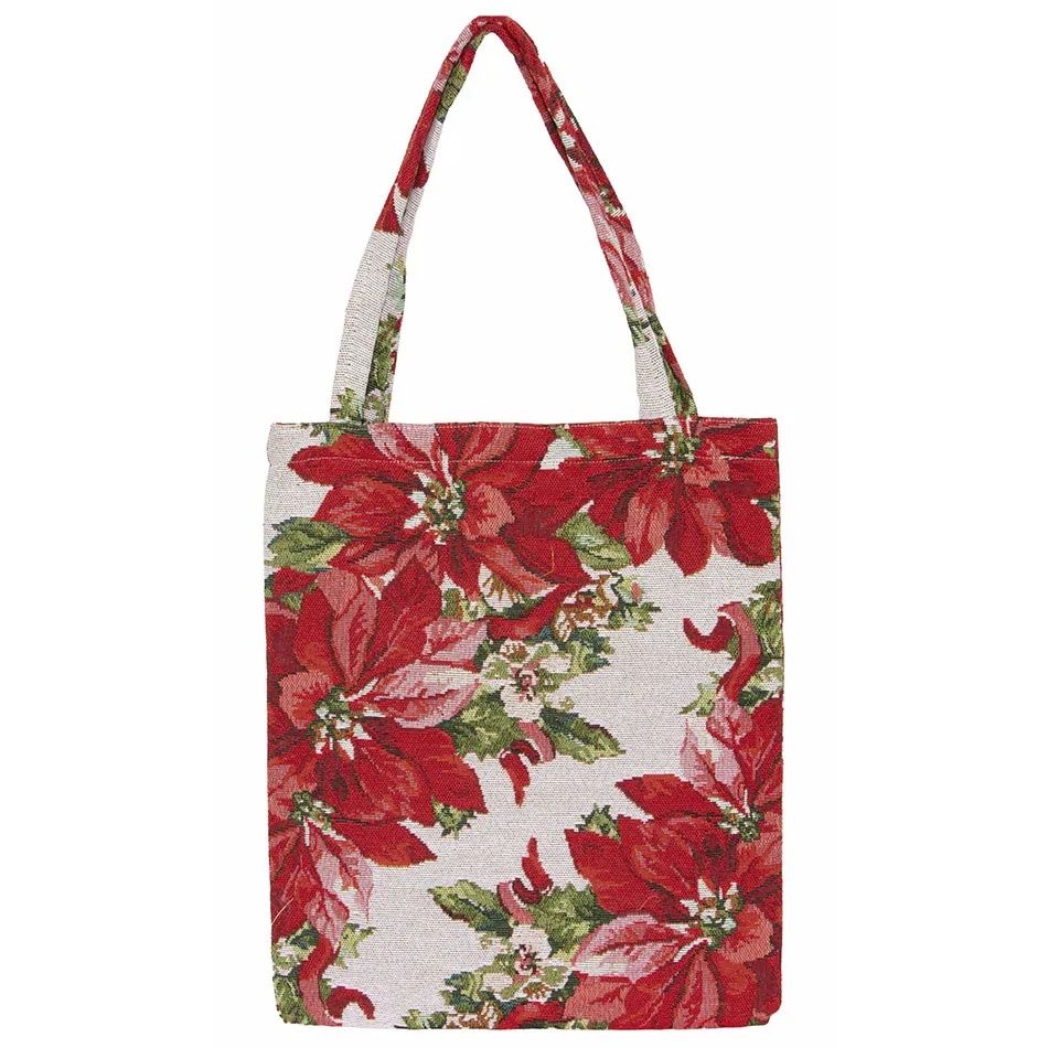 Descrizione Borsa Natale in tessuto, manico lungo, soggetto stella di natale.